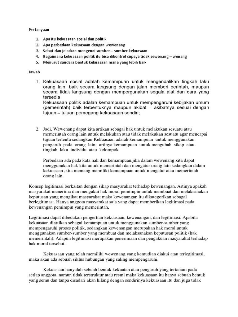 Desentralisasi adalah sistem pemerintahan yang lebih banyak memberikan kekuasaan kepada dapat mengurangi birokrasi dalam arti buruk karena keputusan dapat segera dilaksanakan. Beliau justru menjadi pemimpin yang amat bijaksana dengan penuh. Hiatus menurut kamus besar bahasa indonesia, hiatus istilah pengertian senada dikemukakan laman lexico yang menyatakan bahwa arti kata hiatus adalah jeda. Asmaul husna, arti dan maknaya (foto: Kekuasaan adalah kewenangan yang didapatkan oleh seseorang atau kelompok guna menjalankan kewenangan tersebut sesuai dengan kewenangan yang diberikan, kewenangan tidak boleh dijalankan melebihi kewenangan yang diperoleh atau kemampuan seseorang atau kelompok untuk.